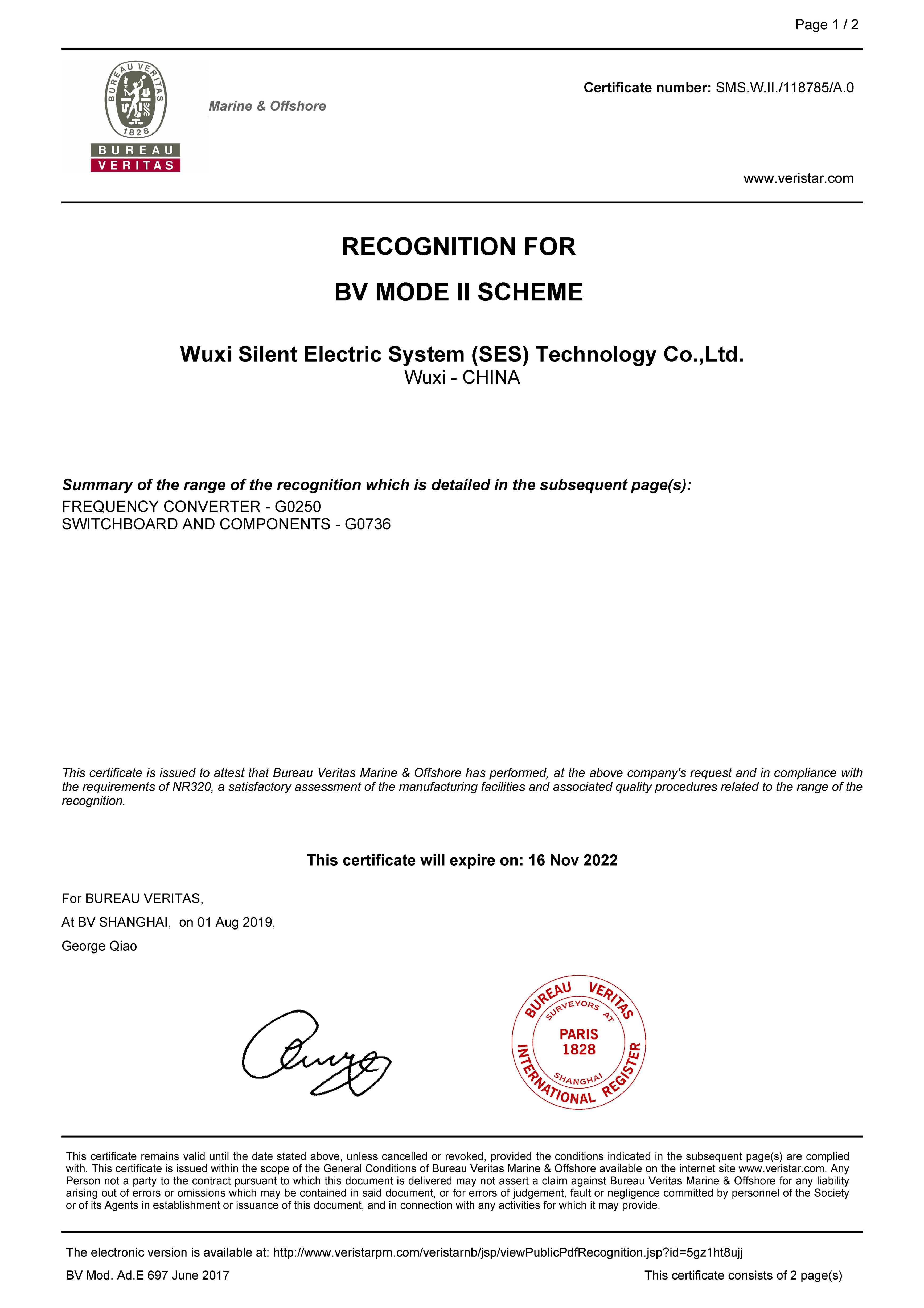 此次獲得的工廠認(rèn)可及型式認(rèn)可是賽思億繼RINA意大利船級社之后獲得的第三個權(quán)威船級社認(rèn)可證書,標(biāo)志著公司的船用變頻模塊在產(chǎn)品特性、性能指標(biāo)、工作環(huán)境等方面完全符合法國船級社的相關(guān)規(guī)定,同時使得公司船用變頻產(chǎn)品的BV產(chǎn)品取證周期大大縮短,為今后承接更多的國內(nèi)外船用產(chǎn)品訂單奠定良好基礎(chǔ)。賽思億將依托產(chǎn)品、技術(shù)及服務(wù)等綜合優(yōu)勢,進(jìn)一步拓展國際船舶海工市場。