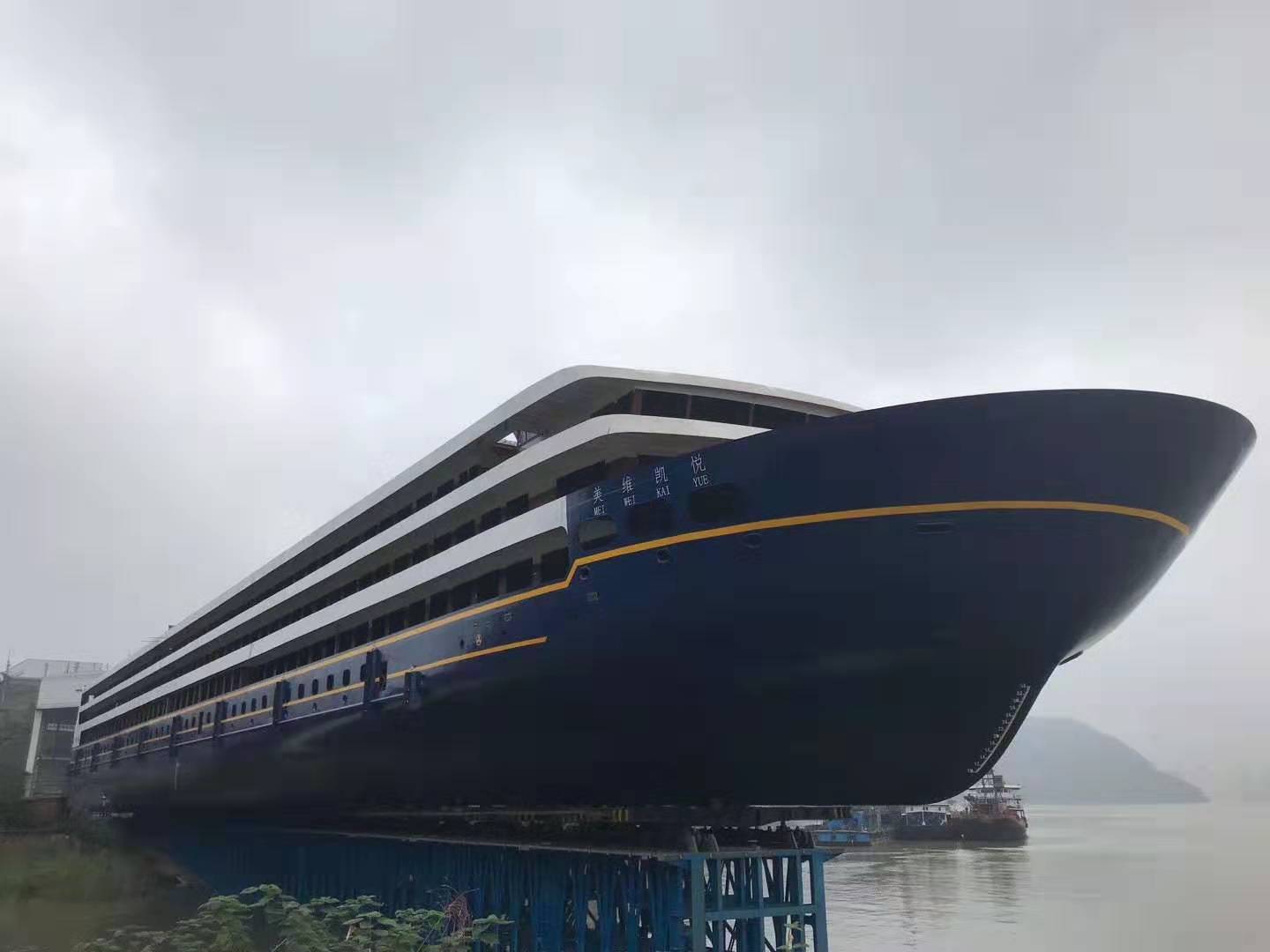 “美維凱悅”游輪總長149.99米,,型寬21.8米,型深4.5米,設(shè)計吃水2.9米,為鋼質(zhì)、雙尾、前傾首柱、雙槳、雙舵、雙電機驅(qū)動的游輪,建成后將是中國內(nèi)河最大游船,主要用于接待國內(nèi)外賓客游覽長江三峽,是長江干線重慶至上海移動的五星級水上酒店,“美維凱悅”同樣采用賽思億直流組網(wǎng)電力推進系統(tǒng),整船裝機容量5MW,直流組網(wǎng)技術(shù)的應(yīng)用在為游客帶來更安靜、舒適的游覽體驗的同時,大大優(yōu)化了柴油機組運行工況,明顯改善船舶氣體排放問題。