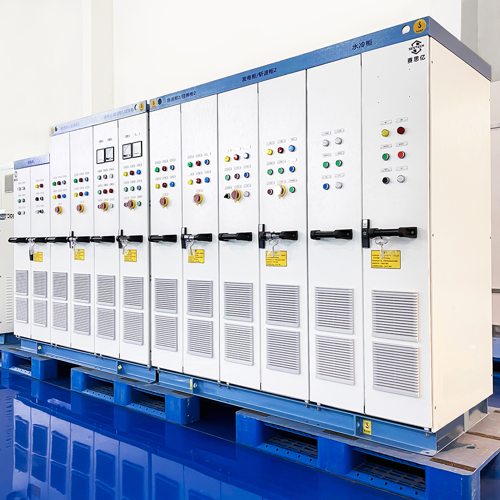 該游艇船長20.77米,船寬6.10米,吃水1.21米,整個(gè)系統(tǒng)配置1臺120kW的應(yīng)急發(fā)電機(jī)組,2組245kWh的鋰電池組,經(jīng)過賽思億集中式的自主知識產(chǎn)權(quán)直流母線變頻電控設(shè)備進(jìn)行并網(wǎng),驅(qū)動2臺120kW的主推電機(jī)。