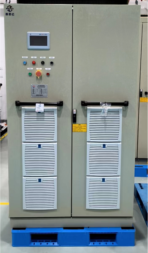 該船動(dòng)力來源為常規(guī)柴油推進(jìn)主機(jī),系統(tǒng)配置一臺(tái)350kW的軸帶發(fā)電機(jī),軸帶電機(jī)通過齒輪箱與主機(jī)自由端相連接,確保主機(jī)在正常使用轉(zhuǎn)速范圍內(nèi),系統(tǒng)能夠發(fā)出足夠的功率,供應(yīng)全船負(fù)荷。目前變頻電控設(shè)備已發(fā)至客戶指定地點(diǎn)。