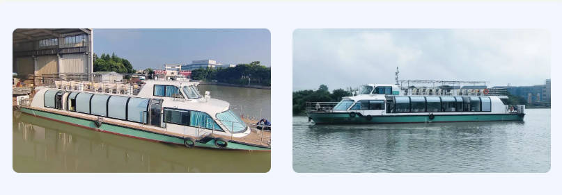 三江兩岸水上黃金旅游線一期4艘新造船項(xiàng)目目前陸續(xù)試航成功,賽思億動(dòng)力系統(tǒng)各項(xiàng)功能通過試航考驗(yàn),目前,“江蘆號(hào)”、“江翠號(hào)”、“江薇號(hào)”、“江雪號(hào)”已陸續(xù)開往杭州,為即將到來的杭州亞運(yùn)會(huì)服務(wù)!作為錢塘江水域目前載客量最大的批量新能源客船,將為“三江兩岸”帶來更多元化、更高品質(zhì)的水上游船服務(wù),為亞運(yùn)會(huì)各方游客帶來綠色靜音服務(wù)。