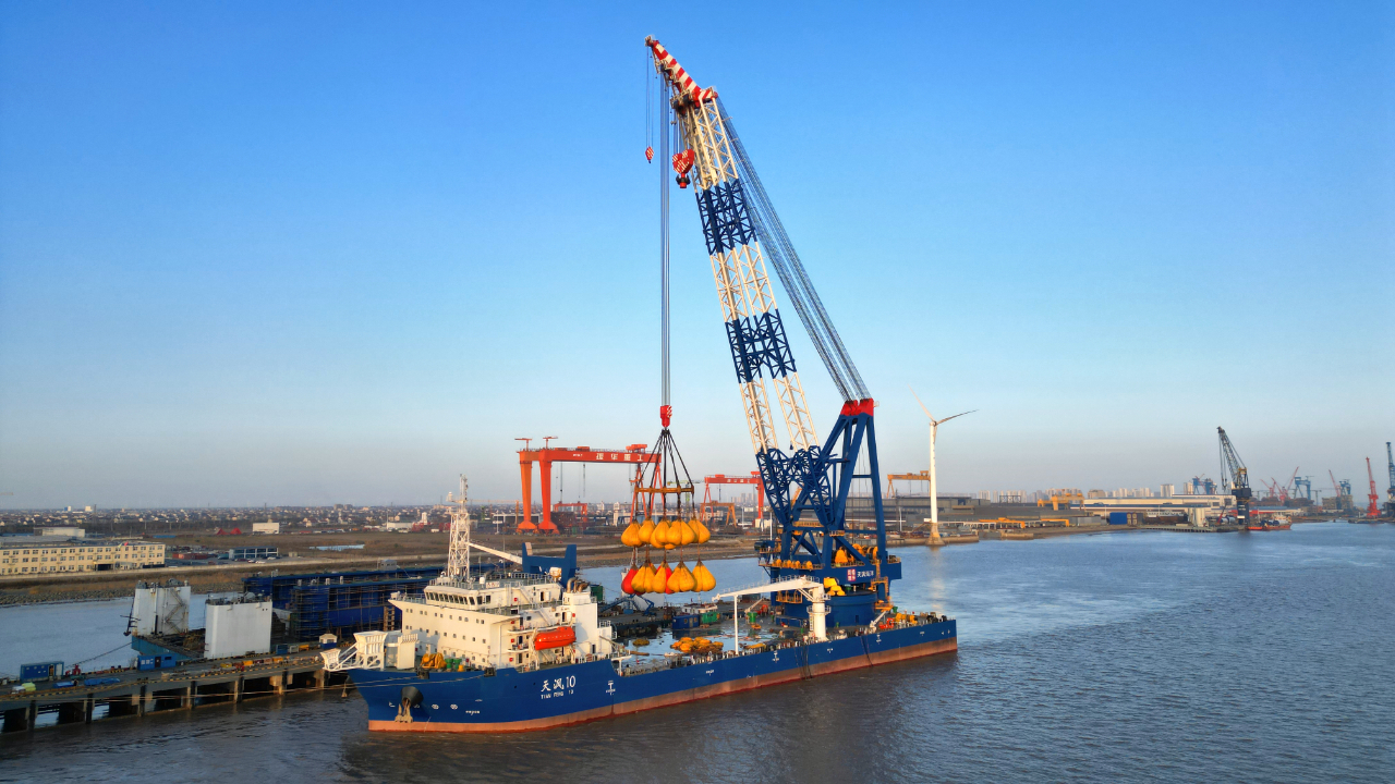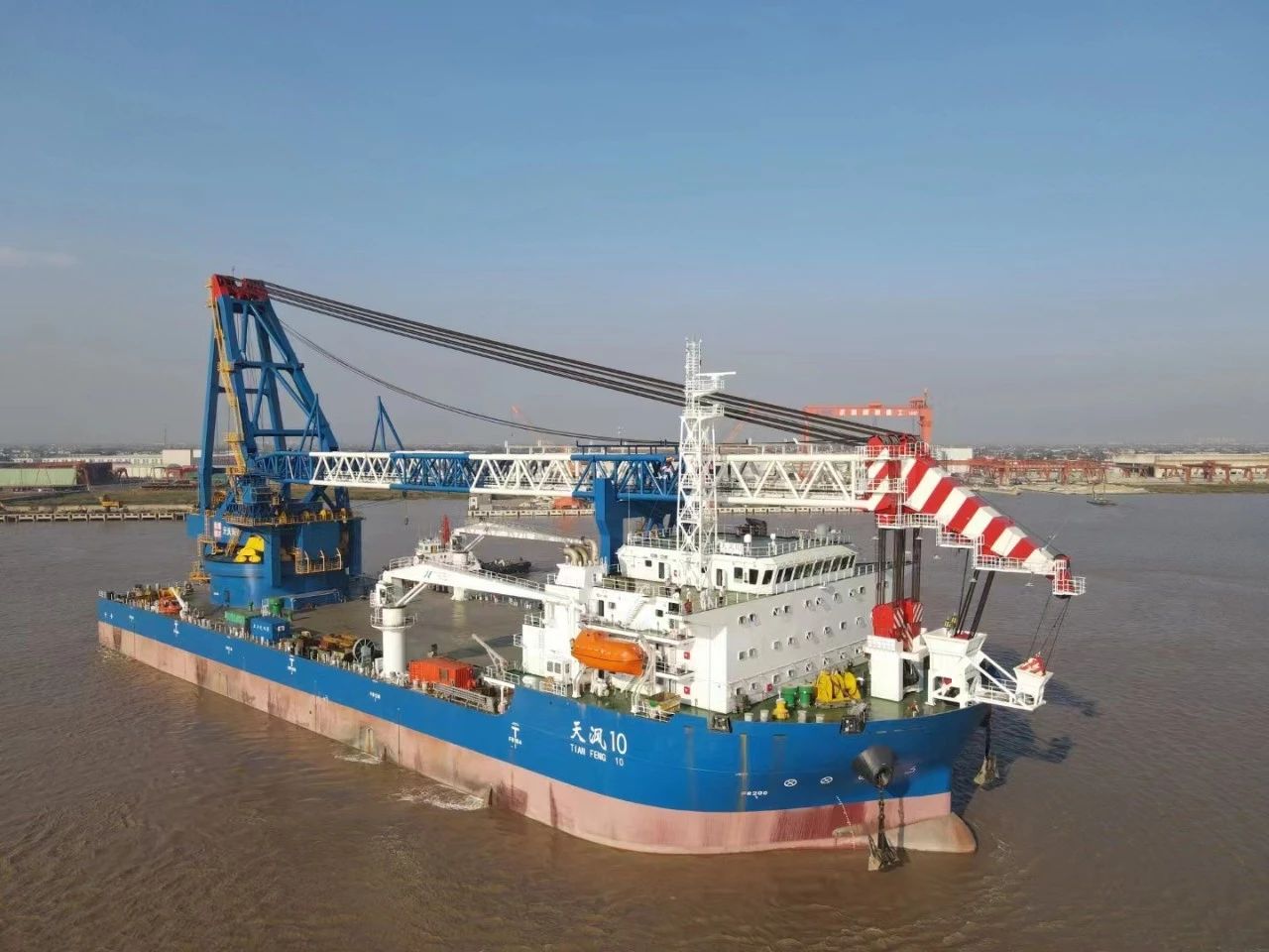 “天沨10”主要用于海上風電單樁基礎、導管架、平臺模塊、升壓站組件以及大型海上鋼構(gòu)等吊裝工作。在固定尾吊狀態(tài)下,“天沨10”設備的最大起重量可達3000噸,最大起吊高度達110米,設備配備了起升、變幅及360°連續(xù)全回轉(zhuǎn)等操作功能,能夠全方位滿足海上風電等工程施工的作業(yè)需求。
