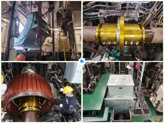 “KANARIS” 177000DWT散貨船,船長282m,入級(jí)ABS船級(jí)社,改造方案搭載中船賽思億分半式永磁抱軸電機(jī)+變頻器+變壓器的軸發(fā)改造方案,軸發(fā)系統(tǒng)額定功率1200kW,同時(shí)對原船功率管理系統(tǒng)(PMS)和主機(jī)遙控系統(tǒng)(ECS)進(jìn)行改造,可實(shí)現(xiàn)降功率運(yùn)行及轉(zhuǎn)速低時(shí)自動(dòng)啟動(dòng)發(fā)電機(jī)組,保護(hù)電站及船舶穩(wěn)定運(yùn)行。作為全流程 EPC 總承包項(xiàng)目,中船賽思億全程主導(dǎo)了從前期3D掃描、方案布置設(shè)計(jì)、生產(chǎn)制造到安裝及調(diào)試等全鏈條服務(wù)。