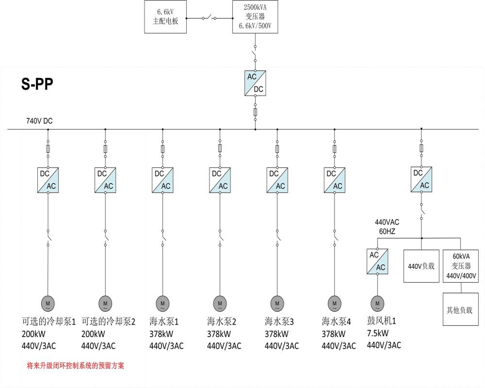此次脫硫裝置改造項(xiàng)目所采用的直流組網(wǎng)集成式電源系統(tǒng)是一個(gè)標(biāo)準(zhǔn)化、緊湊化和模塊化的解決方案,核心電氣設(shè)備應(yīng)用于德國船東,產(chǎn)品認(rèn)證為DNV•GL,在有限的改造空間內(nèi)通過高集成度的直流組網(wǎng)技術(shù)將洗滌器的變頻供電系統(tǒng)集成到現(xiàn)有的電網(wǎng)中,這樣的系統(tǒng)改進(jìn)將明顯改善船舶洗滌器改造的工程周期。