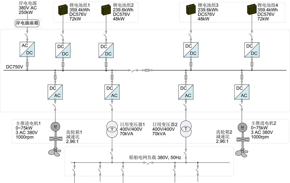 云南滇池純電動游船,船長39.8米,寬10米,雙體船,B級航區(qū),載客150人,采用了賽思億的S-Renewable 新能源電力推進(jìn)系統(tǒng),整船配置鋰電池總?cè)萘抗灿?198kWh,2臺75kW的推進(jìn)電機(jī),用于昆明滇池觀光游覽,根據(jù)生產(chǎn)計劃將于2021年交付并投入使用。